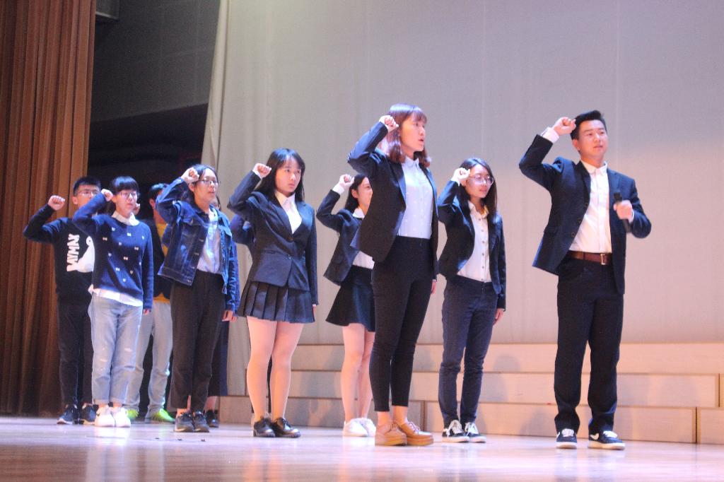 庄严而隆重的大会在热闹的掌声中结束,每一年换届大会,老成员都会带着学生会的不舍和对新成员的嘱托离开自己曾经辛勤工作的岗位。希望每一个刚走进学生会的同学严格要求自己,积极提高自身素质和工作学习能力,时刻保持对学校和同学服务意识。