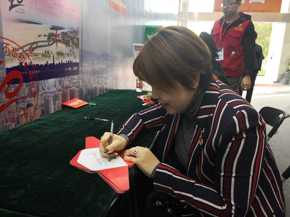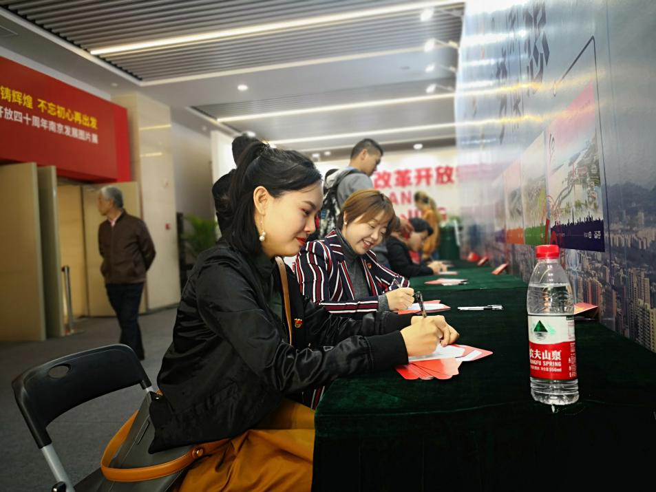 展览精选了620余幅图片,从影像视频到实体模型诸多的展陈手段让改革开放40周年南京高速发展的变化一一呈现出来,使得在场不少的党员们回忆起属于自己的南京故事。展馆还特别展示了党的十八大以来取得的新发展、新成就,进一步坚定了干部群众改革开放再出发的信心和将改革开放进行到底的决心。此馆承载着南京的变迁,同时也是中国时代的大发展,观看者前往展览馆感受40年来南京的巨变,憧憬“富强美高”新南京的未来,为南京加油,为南京奋斗,同时也为自己生在南京而感到骄傲。 本次的展览还特别设置了留言环节,大家在观看结束后,纷纷写下自己的观看感受以及对于南京未来的寄语投入邮箱中。这些录入部分的精彩留言,还将永久保存,成为南京新的城市记忆。40年倏然而逝,中国发生了翻天覆地的变化,一张张布满记忆的照片,一件件充满回忆的老物件,成为凝聚个人记忆、家庭记忆和时代记忆的交汇点。
