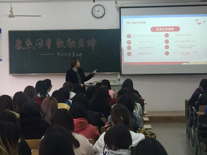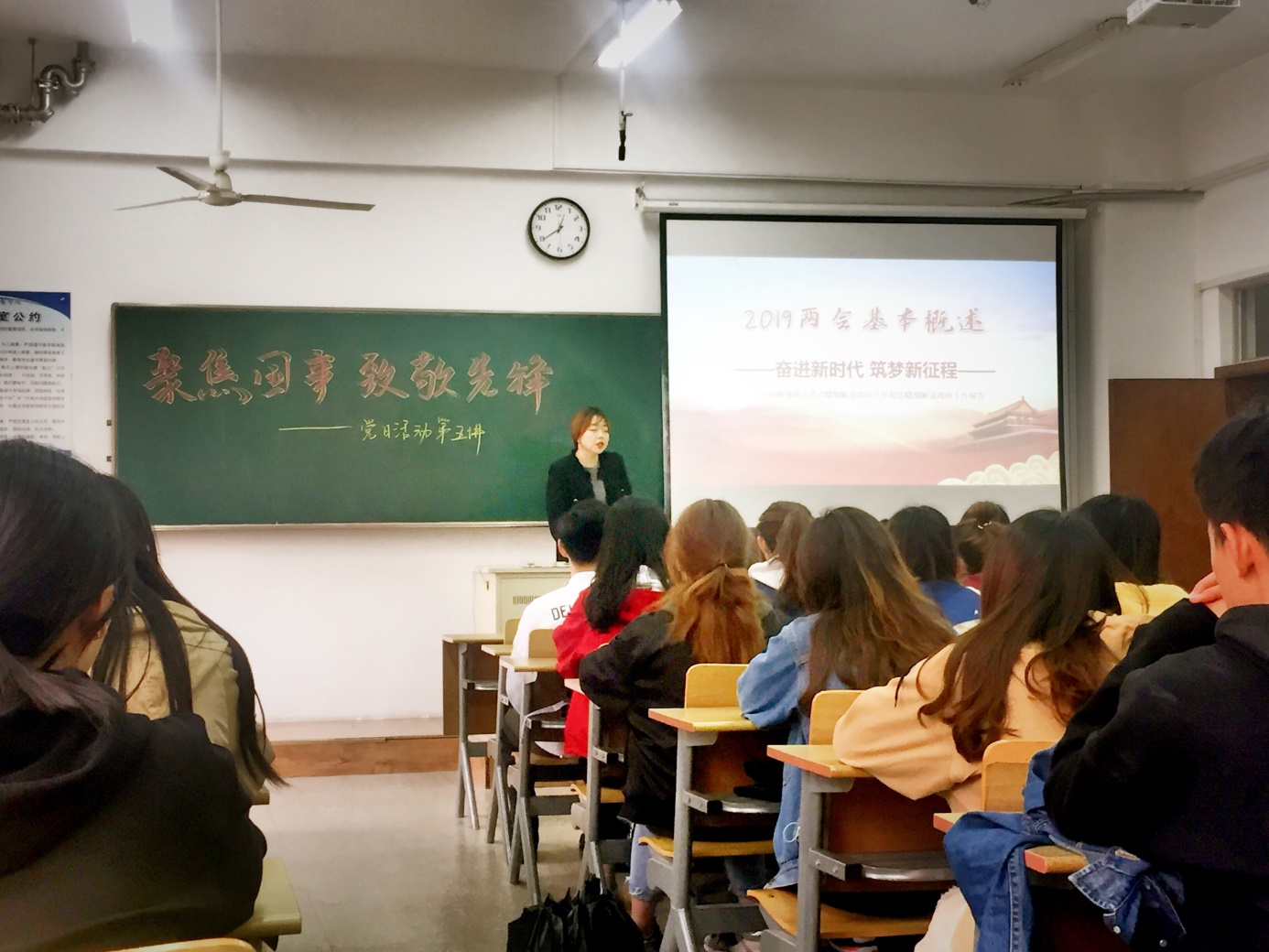 4月26日中午12时30分,世界杯体育官方网站在电子电工实验大楼515开展了“不忘初心跟党走,牢记使命学担当”——聚焦国事,致敬先锋系列党日活动第五讲。我院学生第二党支部书记江晶老师作为主讲人带领全体入党积极分子一起学习了全国两会精神。