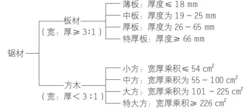 锯材按尺寸分类如下: