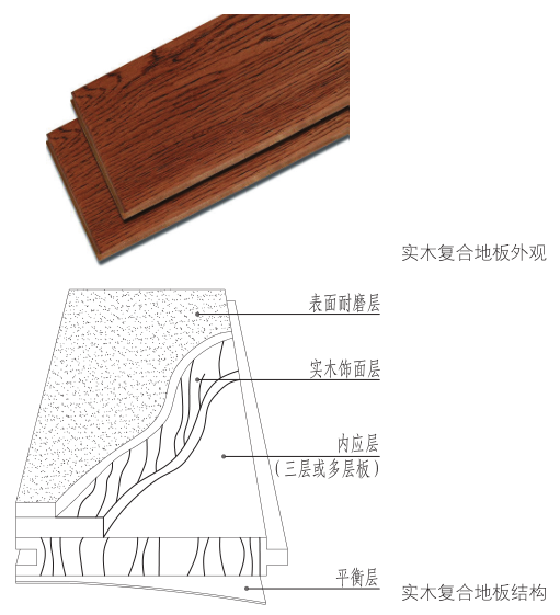 图1-3-9 实木复合地板外观和内部结构