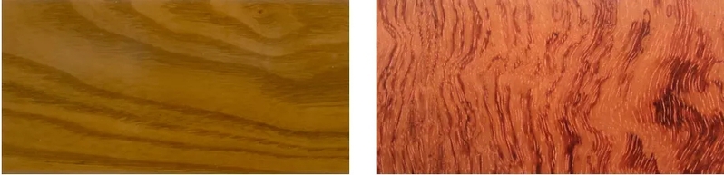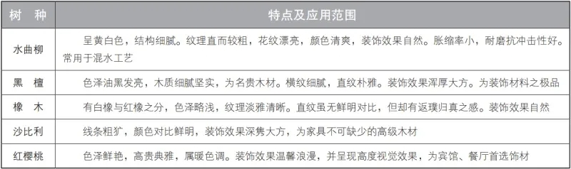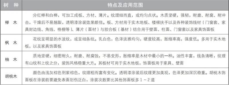 柚木、榆木、柞木、水曲柳、榉木、柳桉、枫木、印茄木、重蚁木、甘巴豆木等,通常为硬材(图1-2-2)。