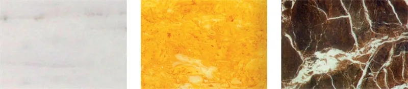 图2-2-1 汉白玉(左)、金花米黄(中)、紫罗红(右)