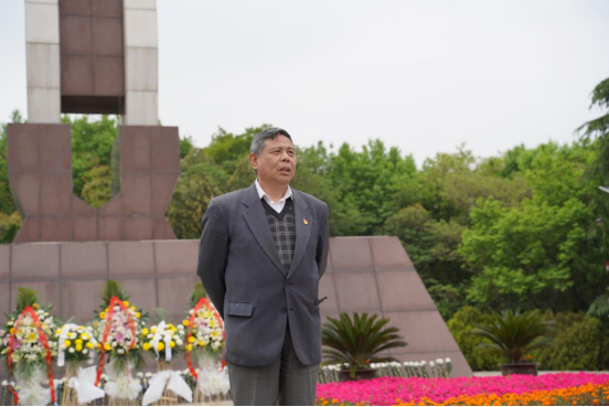 党总支书记唐小平讲话,他说1949年4月23日是南京解放72周年纪念日今天大家来到打开南京北大门吹响解放南京冲锋号三浦战役求雨山革命烈士纪念碑前缅怀先烈接受爱国主义和革命理想主义的教育从革命英烈精神中汲取信仰力量机会难得使命光荣责任重大我们每位共产党员都必须牢记初心使命开拓进取不负先烈不负当下我们每位青年大学生党员更要加倍珍惜现在的生活在今后的学习和工作中积极发挥党员的先锋模范作用,传承发扬革命英烈精神体现世界杯体育官方网站正能量唱响世界杯体育官方网站好声音