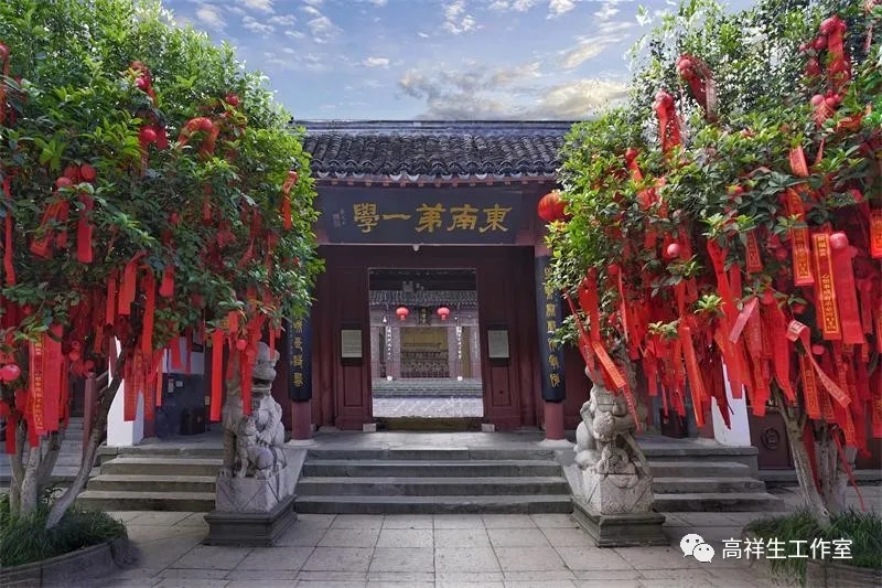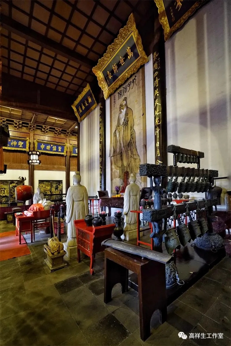 学宫与大成殿之间以一院落空间过渡,进入学宫的明德堂需要通过一段隔墙,隔墙的入口处设有悬挂清代状元秦大士书写的“东南第一学”匾额。