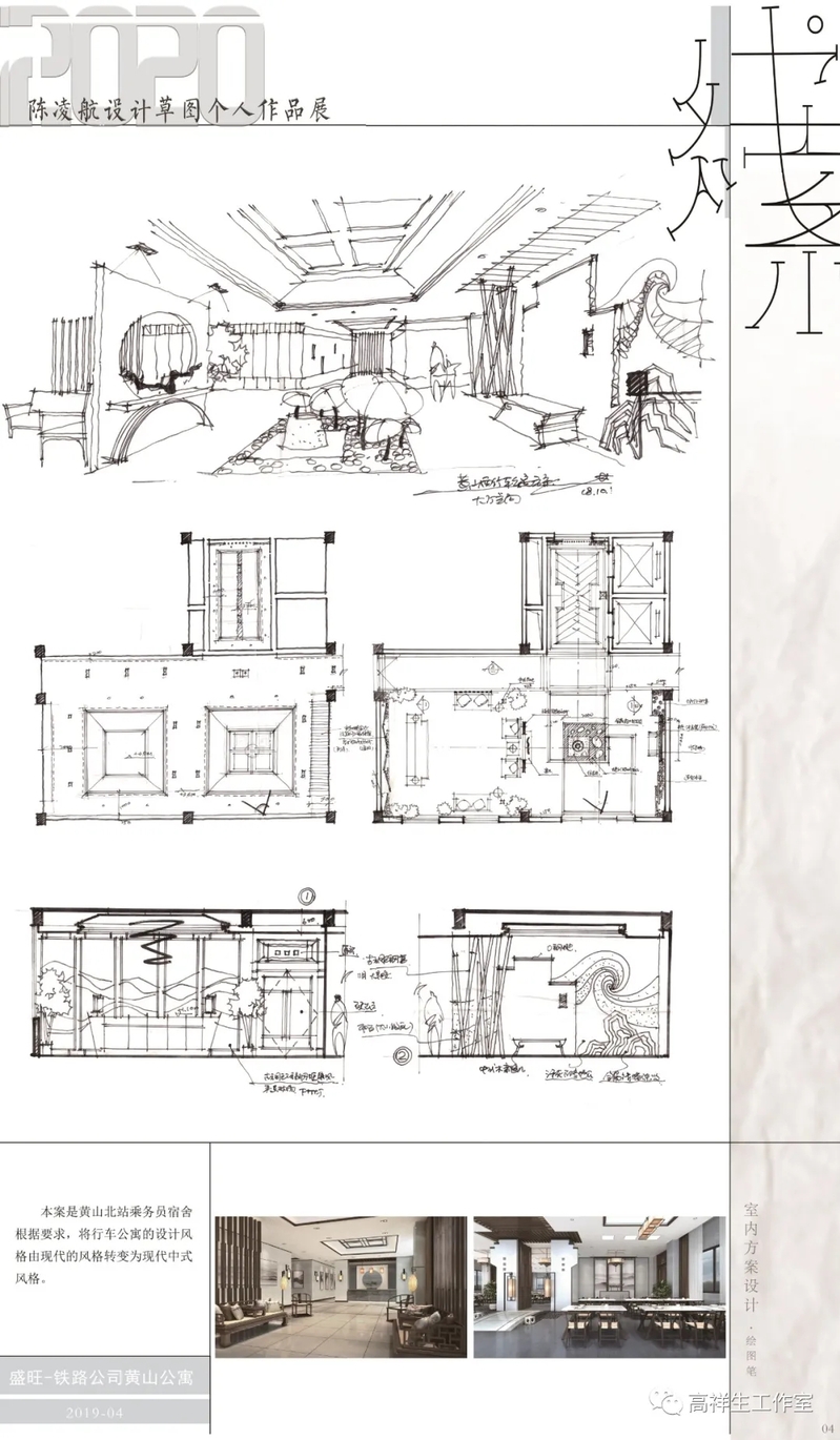 上世纪80年代末90年代初,我经常参加一些工程设计项目的投标。在这些工作中,陈凌航是我的得力助手,他的主要工作是画方案和效果图,那时他在装饰设计界已是小有名气的“快枪手”。后来他又随我的科研项目去日本,参观学习期间他画了一些ALC板工程设计草图,至今看都还是很有工程和审美价值的。这些草图的形式与现在展示的内容相仿,都是展示了他在建筑环境设计中的一贯追求和娴熟的水平。