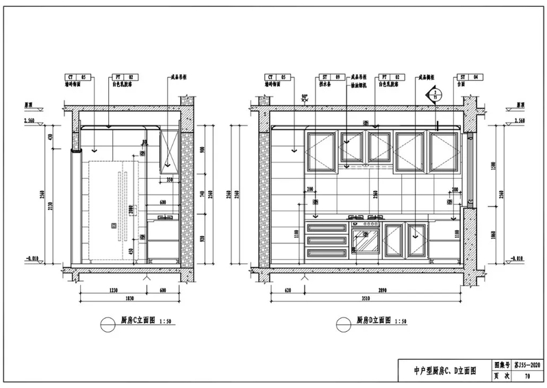 中户型厨房C、D立面图