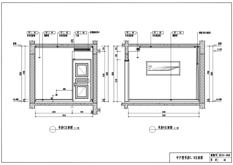 中户型书房C、D立面图