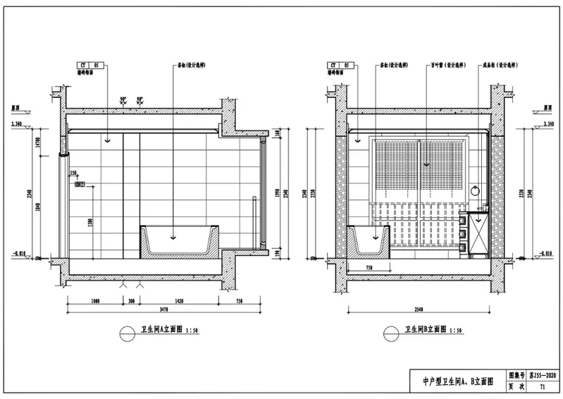 中户型卫生间A、B立面图