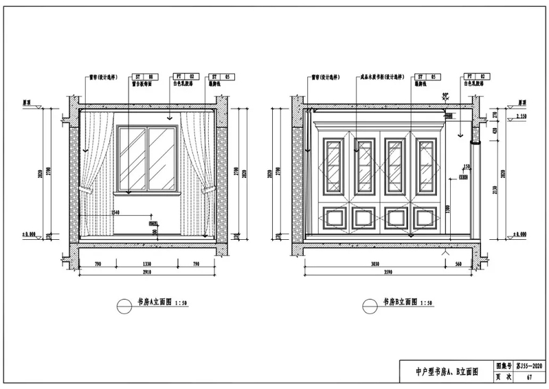 中户型书房A、B立面图
