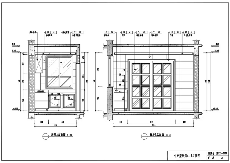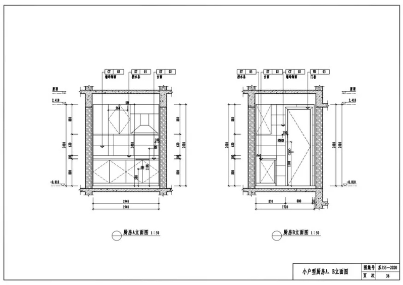 中户型厨房A、B立面图