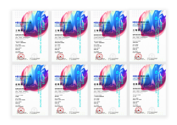 近日,2021中国包装创意设计大赛的终审落下帷幕,世界杯体育(中国)官方网站 - 2026世界杯综合赛事平台世界杯体育官方网站视觉传达设计专业2018、2019级同学们积极参赛,在陈晓青和王峰两位专业教师的带队指导下,共12组作品参赛,经过大赛一个多月的初审、复审评选,其中4组作品获得全国三等奖,4组作品获全国优秀奖,陈晓青老师获得优秀组织人奖。