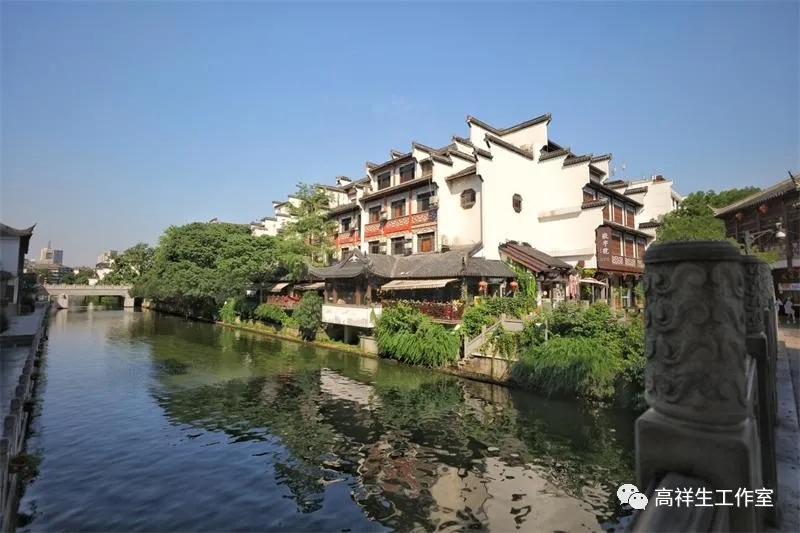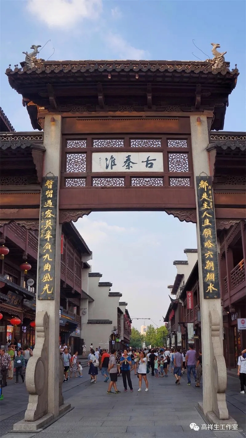 从文德桥、文源桥、平江桥观看秦淮河两岸接踵相连的民居、商铺,粉墙黛瓦、棂窗暗红、山墙层层叠叠,驳岸进退有度,应是东市、西市的建筑样式的延续。北入口、西入口的牌坊,天下文枢、古秦淮的牌坊,比例恰当,尺度适宜,又似乎都出于南京工学院古建学科的教授、专家之手。