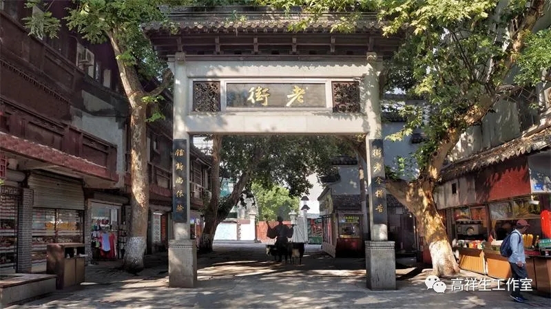 四十多年前去夫子庙人们大多从建康路一段进入的,那时还没有典雅、端庄的夫子庙牌坊和现代、气派的状元楼酒店。贡院西街两旁大多是一、两层楼的民房,期间夹杂着少量的店铺。现在街上都是时尚的新中式风格的店铺,为了不忘贡院西街旧时的面貌,街道东侧设立了一座“老街”的牌坊。