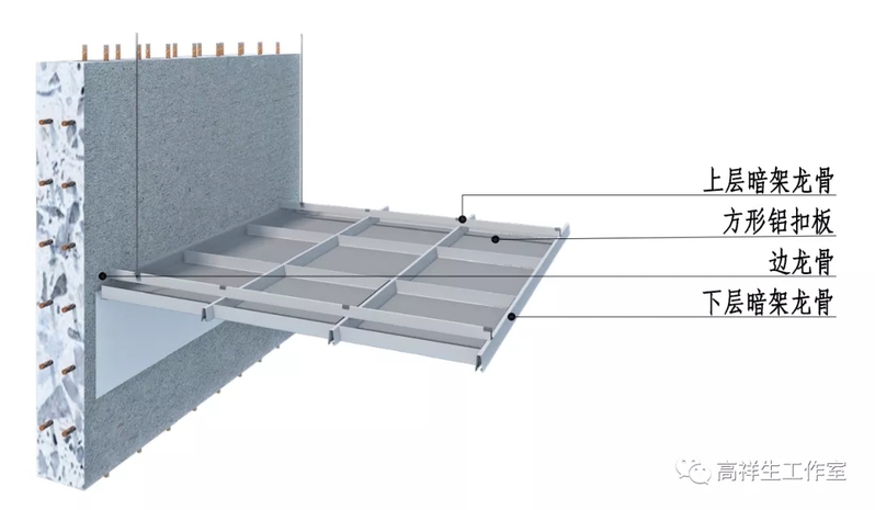 图 13-3-5 明架方形铝扣板顶棚三维图