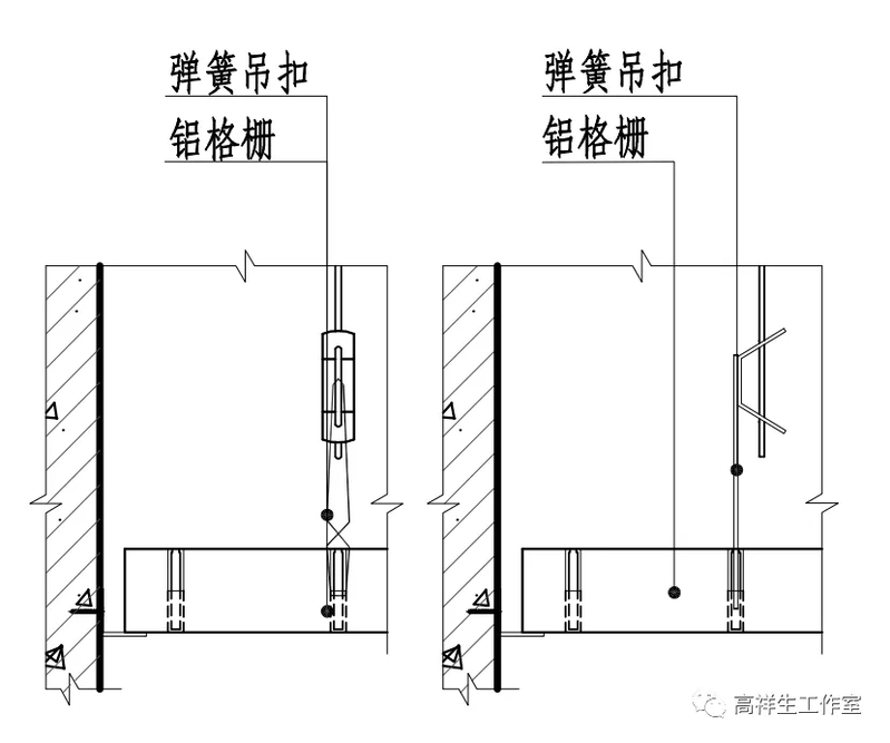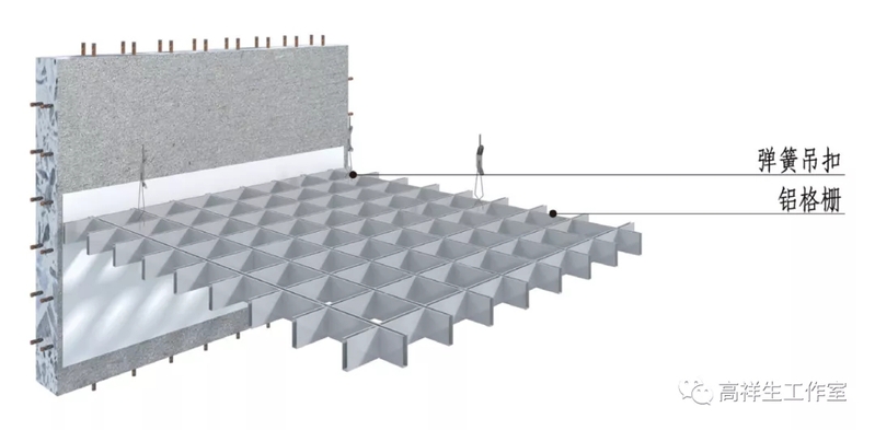 图 13-3-19 铝格栅顶棚构造节点图