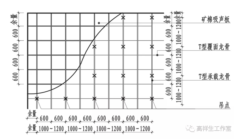 图 13-2-22 暗明龙骨结合矿棉板顶棚平面图