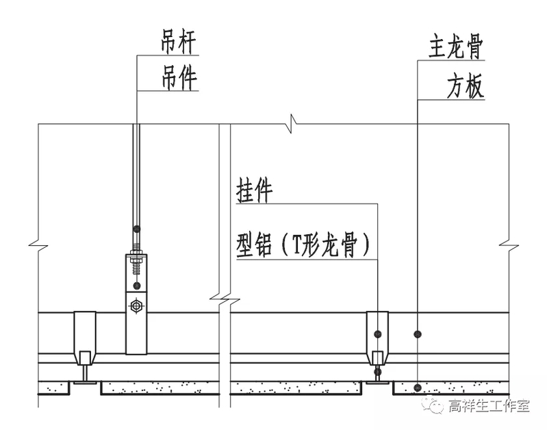 图 13-3-7 明架方形铝扣板顶棚构造节点图