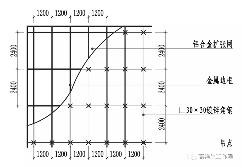 图 13-3-30 明龙骨金属网顶棚平面图