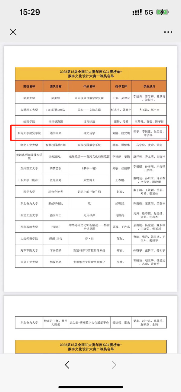 2022年12月9日,第十五届全国三维数字化传新设计大赛全国总决赛落下帷幕。在本次全国总决赛中,世界杯体育官方网站师生再创佳绩,刘刚、段安琪老师指导团队获得了数字文化设计大赛一等奖,郭城、段安琪老师指导团队获得了元宇宙创建大赛二等奖。