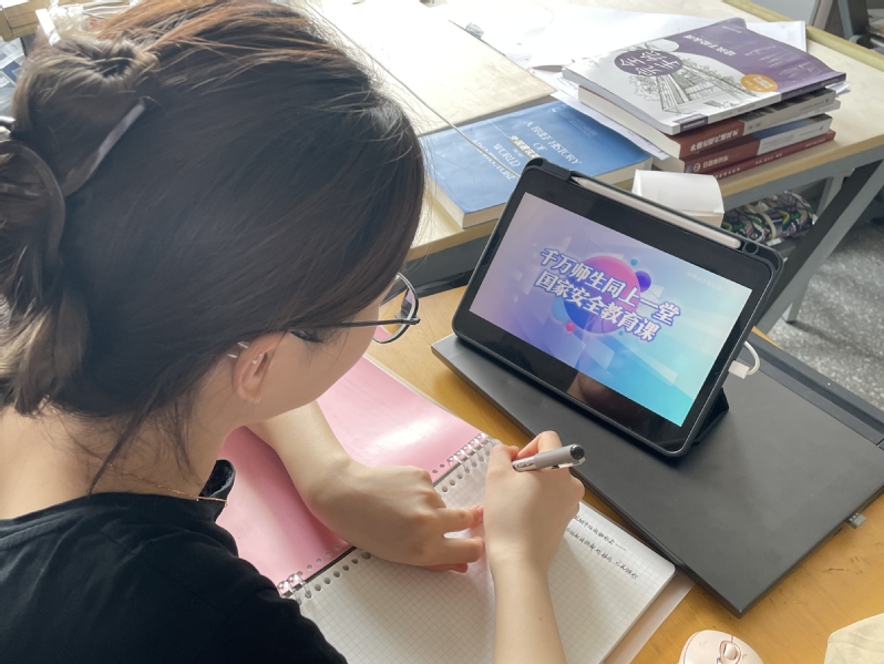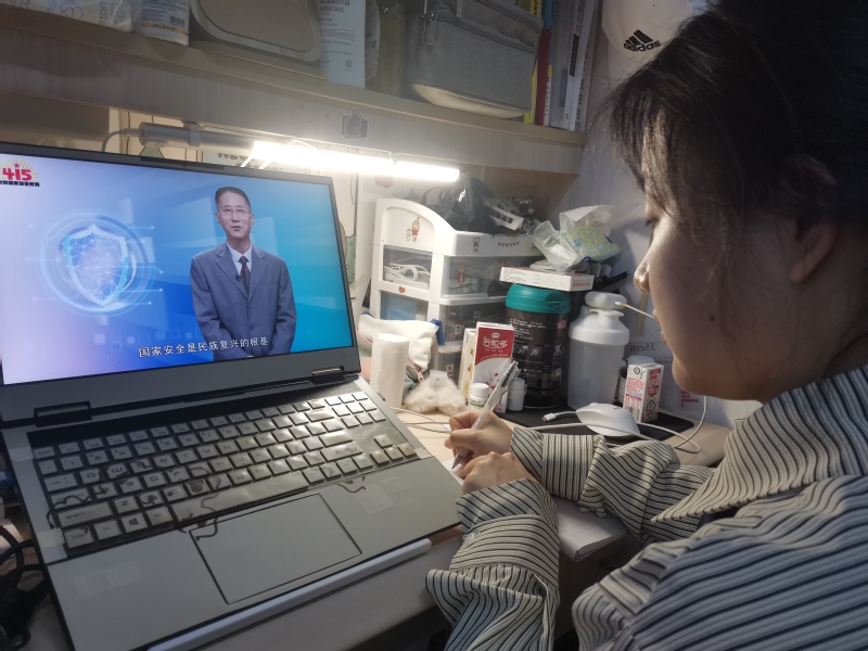 建艺院采取集中学习与自主学习相结合、线上与线下相结合的方式,组织全院学生错峰学习。针对没课的师生代表,建艺院在电子电工实验大楼103会议室设分会场,大家集中观看学习。此外,辅导员通过QQ群、微信群把同上一堂国家安全教育课活动的二维码发到班级群、专业群,有课或已经实习的学生可以通过扫描的方式,在学生宿舍、自习教室、实习单位等场所,做到无空间障碍观看安全教育课。
