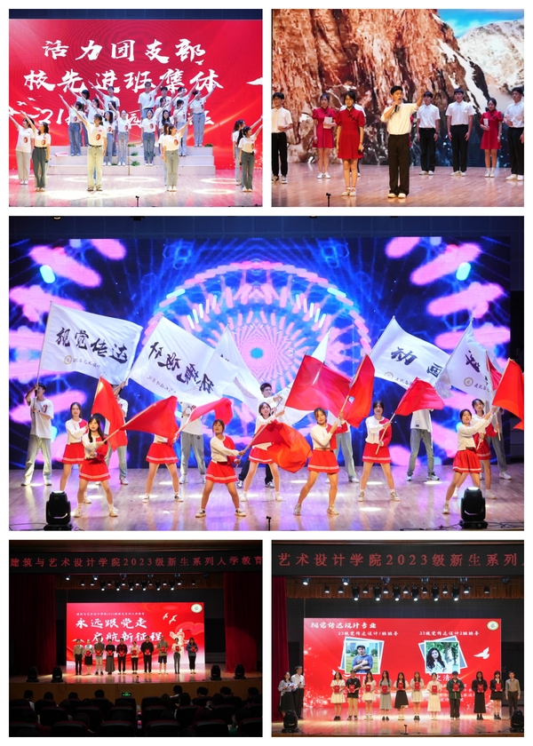开场舞蹈《旗开得胜》表达了建艺学子将用豪迈的姿态迎接美好的大学生活。随后的《戎装上阵,启航新程》视频回顾了新生报到与军训,将大家拉回入学后的点滴。意犹未尽中又进入“梦的心声”学院寄语环节,全体新生开启事先放在座位上的信封,阅读来自学院老师和2023届毕业生的手写祝福卡片。21级风景园林1班进行了班级风采展示,他们将活力团支部的凝聚力和集体荣誉感埋进每一位新生的心中。21级学生干部代表表演了诗朗诵《少年中国说》,铿锵有力、慷慨激昂的语句萦绕在每一位新生的耳边。